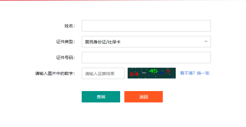 第四步:進入準(zhǔn)考證打印頁面后,填寫個人信息,輸入姓名,選擇證件類型,輸入證件號碼,輸入圖片中的運算結(jié)果,最后點擊查詢即可。